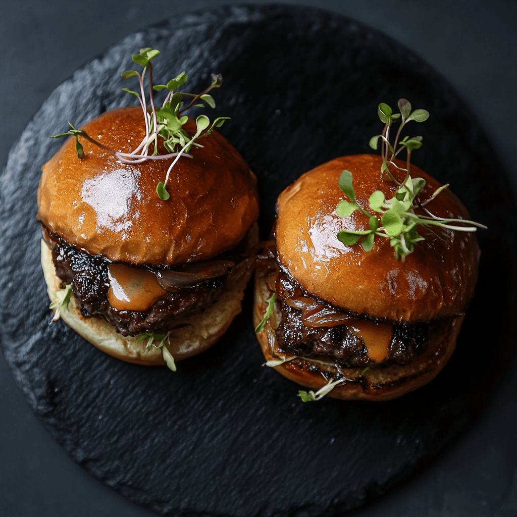 AMERICAN CHEESE, CARAMELIZED ONIONS, BRIOCHE BUN